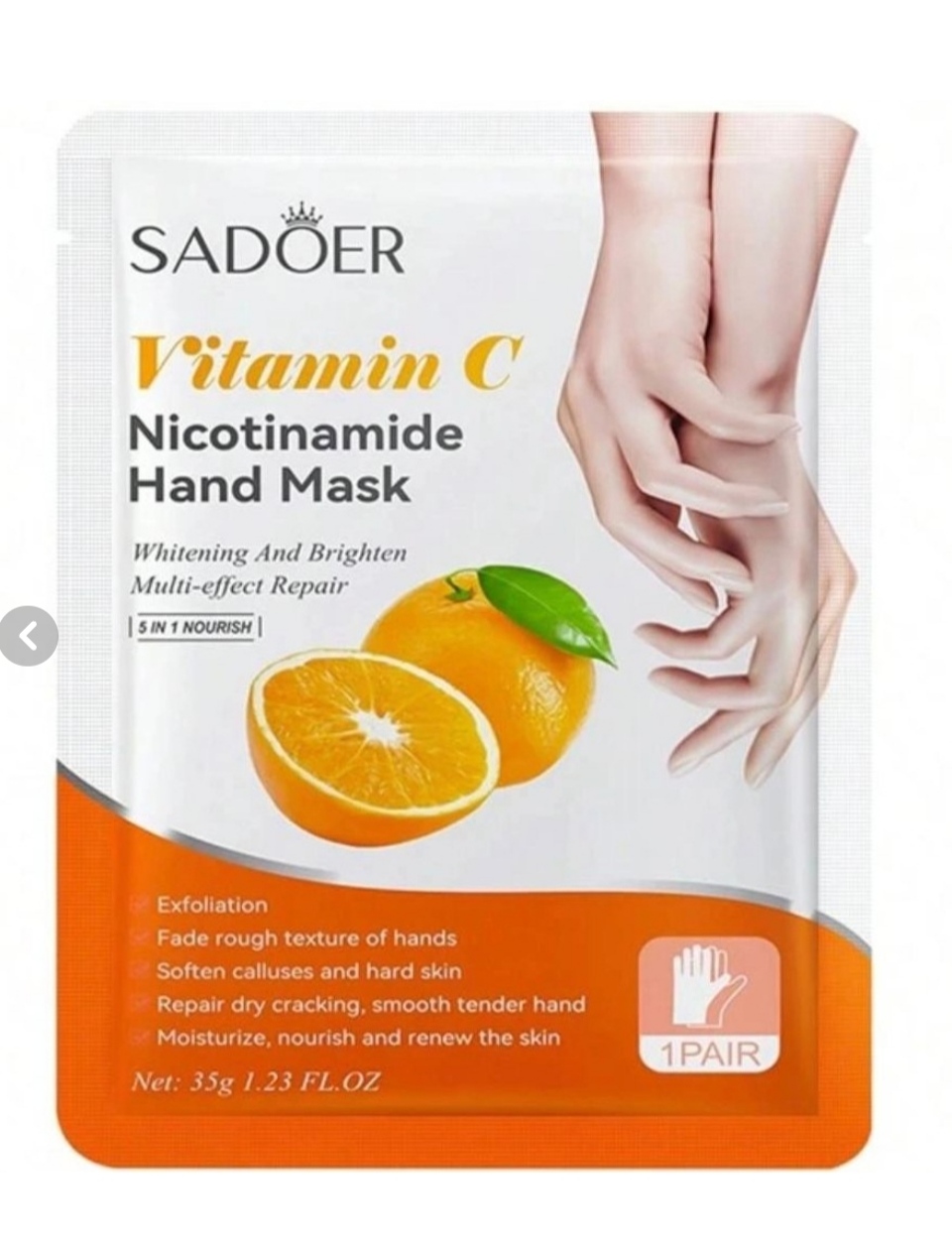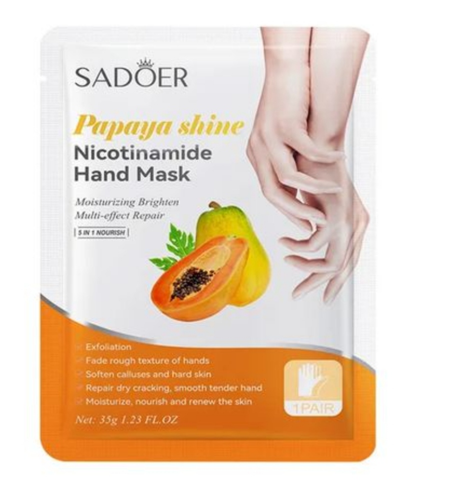 ماسک ورقه ای سادور SADOER 5x1 مخصوص دست مدل نیکوتین آمید با عصاره پاپایا؛ وزن 35 گرم، چین