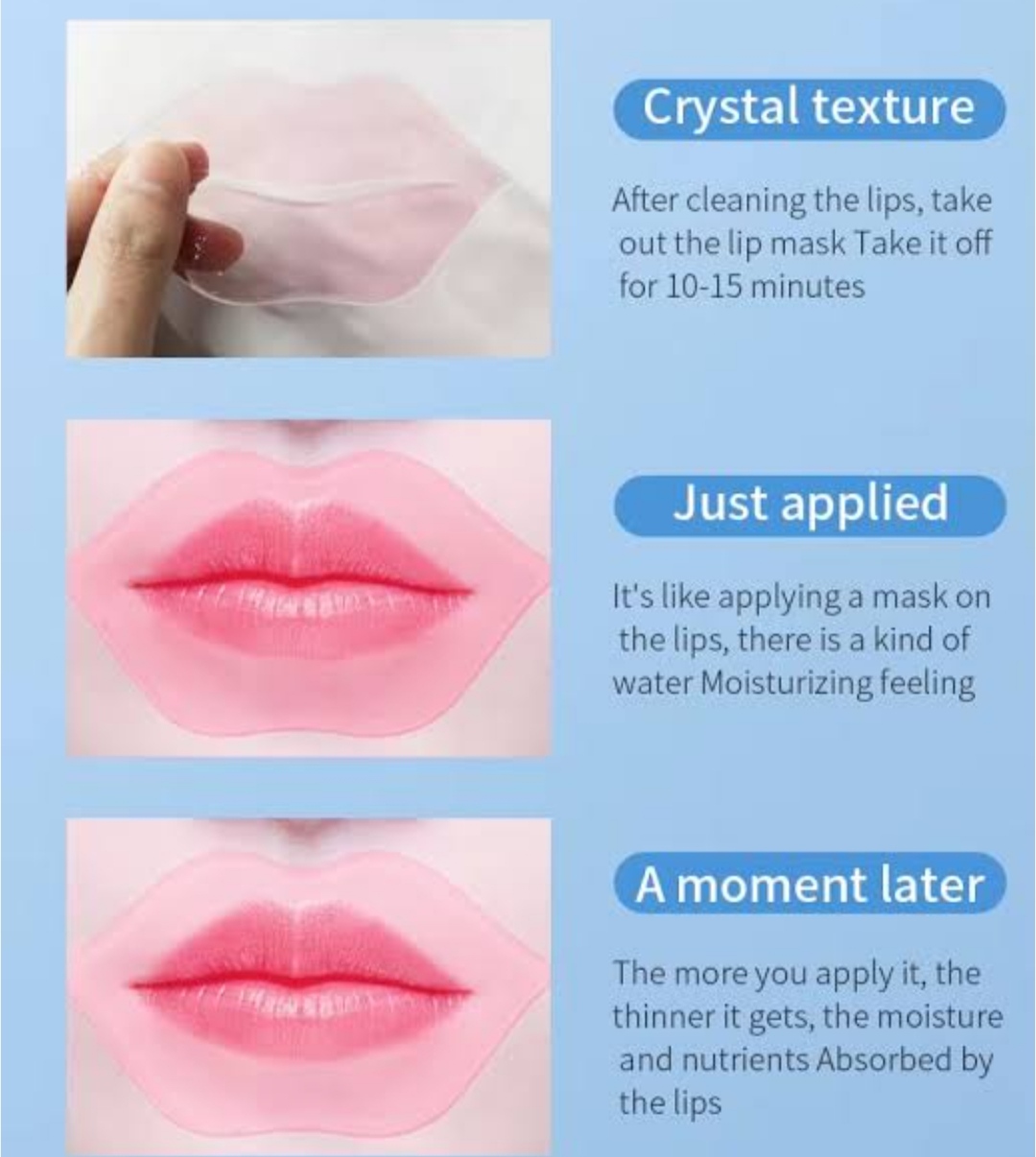 فرآیند استفاده از این ماسک بسیار ساده و سریع است. کافیست ماسک را بر روی لبهای تمیز خود قرار دهید و برای مدت زمان معینی (معمولاً 15-20 دقیقه) به آن اجازه دهید تا اثراتش را نشان دهد. سپس میتوانید ماسک را برداشته و با نرمکننده لب، نتایج مطلوب را تثبیت کنید