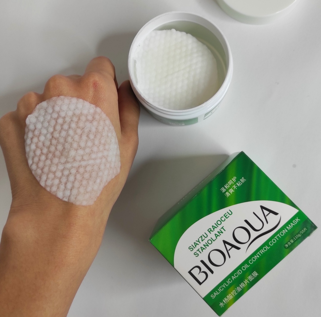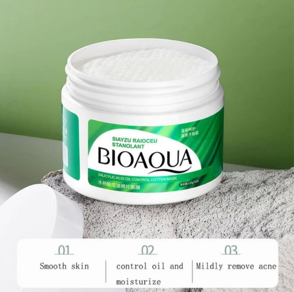 پد کنترل چربی سالیسیلیک اسید بیوآکوا حاوی 55 ورق بسیار نرم کتانی است که هم به جذب بهتر مایع به بافت پوست کمک فراوان کرده و هم موجب پاکسازی سطح پوست از چربی های اضافه و سایر آلودگی ها می شود.