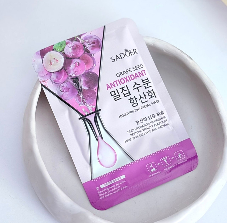 ماسک ورقه ای هسته انگور سادور سرشار از روغن بسیار مفید و کارآمد هسته انگور است که فواید بسیار مفیدی برای پوست صورت به همراه دارد