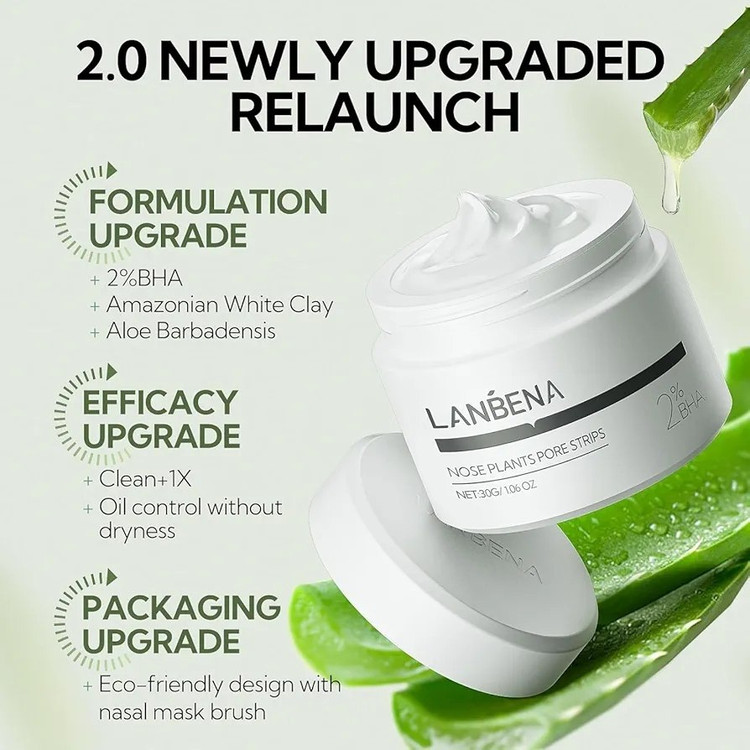 ماسک لانبنا حاوی عصاره های گیاهی از جمله آلوئه، هیالورونیک اسید و BHA است تا علاوه بر از بین بردن آلودگی و جوش های سر سیاه، عملیات تغذیه پوست شما را هم انجام دهد🍁