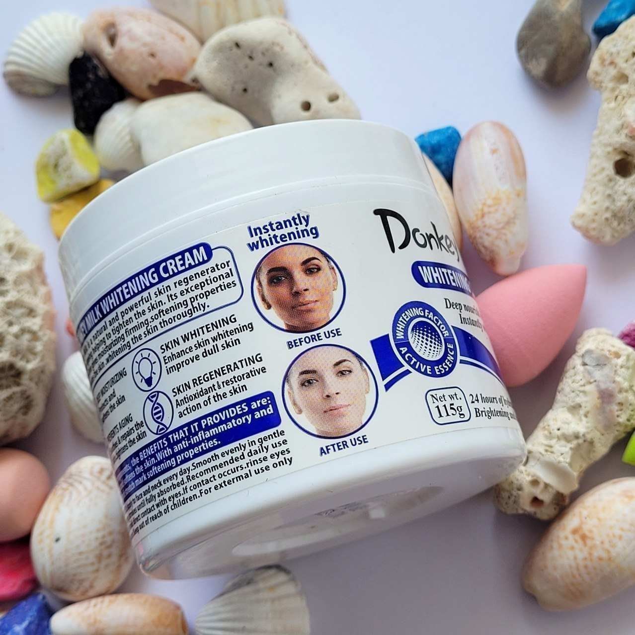 بافتش کِرم هست. با ماساژ دادن روی سطح پوست رنگش روشن میشه و روی تیرگی های بدن تاثیر میذاره و رنگشون رو سفیدتر میکنه.